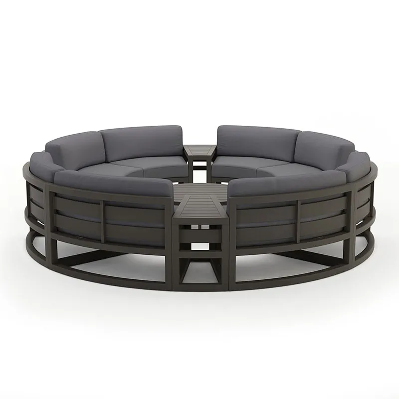Круглий вуличний диван - це не просто функціональний предмет меблів; це трансформаційне доповнення до будь-якої відкритої житлової зони. Його унікальна форма та міцна алюмінієва рама роблять його чудовим вибором для тих, хто хоче покращити свій зовнішній декор чимось, що поєднує в собі сучасний стиль із винятковим комфортом і довговічністю.