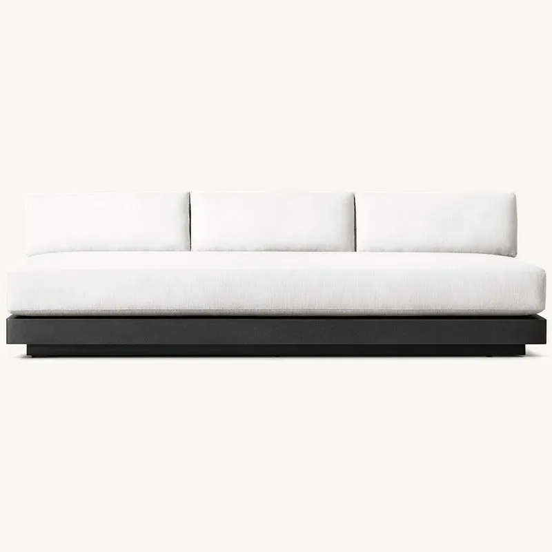 Крім того, витончені лінії та сучасна естетика алюмінієвої рами покращують будь-який зовнішній декор, пропонуючи сучасний вигляд, який доповнює будь-яку обстановку. Нейтральні тони тканини подушки ідеально поєднуються з природним зовнішнім середовищем, створюючи шикарний і привабливий вигляд. Цей гарнітур із диваном і двоспальним ліжком служить не лише функціональною зоною для відпочинку, але й стильним акцентом у вашому житловому просторі на відкритому повітрі.