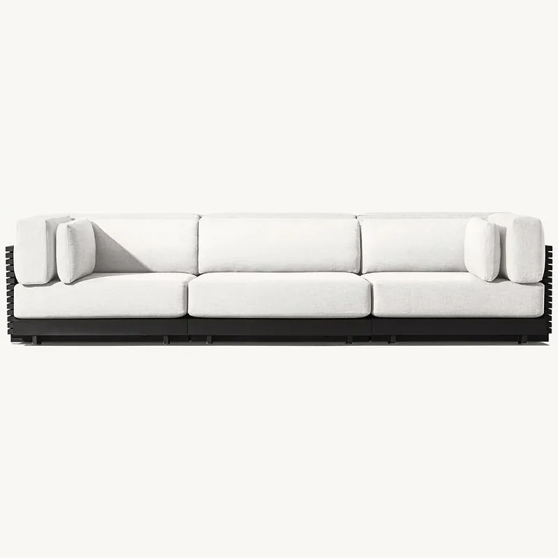 Цей відкритий диван із високою спинкою настільки ж практичний, як і розкішний. Його універсальний дизайн добре підходить як для маленьких, так і для великих приміщень, забезпечуючи гнучкі варіанти сидіння для будь-якого випадку. Обслуговування просте — алюмінієвий каркас можна очистити простим витиранням, а чохли подушок можна знімати та прати в пральній машині, завдяки чому диван виглядає свіжим і новим.