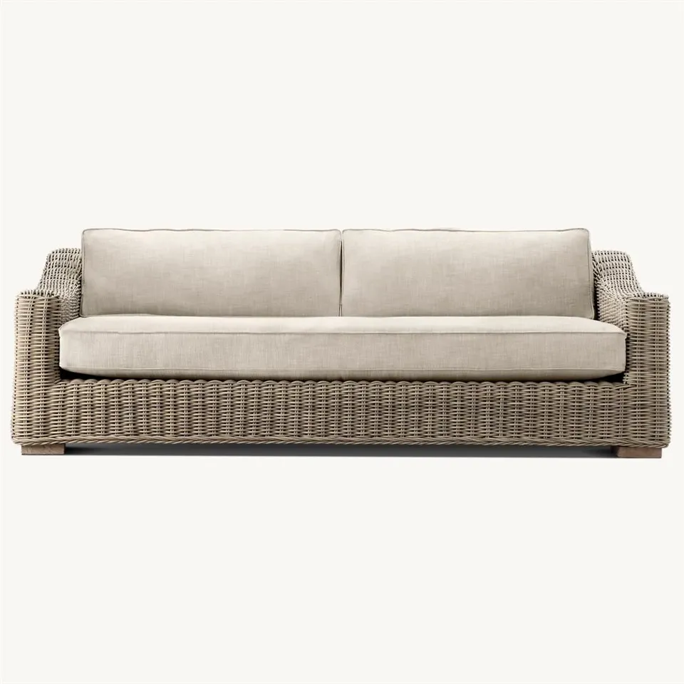 Ласкаво просимо до нашої колекції вуличних меблів, щоб додати елегантності та комфорту вашому патіо! Ми з гордістю представляємо приголомшливий сонячний ротанговий диван, який стане ідеальним компаньйоном для вашого дозвілля на свіжому повітрі, незалежно від того, насолоджуєтеся ви читанням наодинці або насолоджуєтеся веселими моментами з родиною, він відповідатиме вашим потребам.